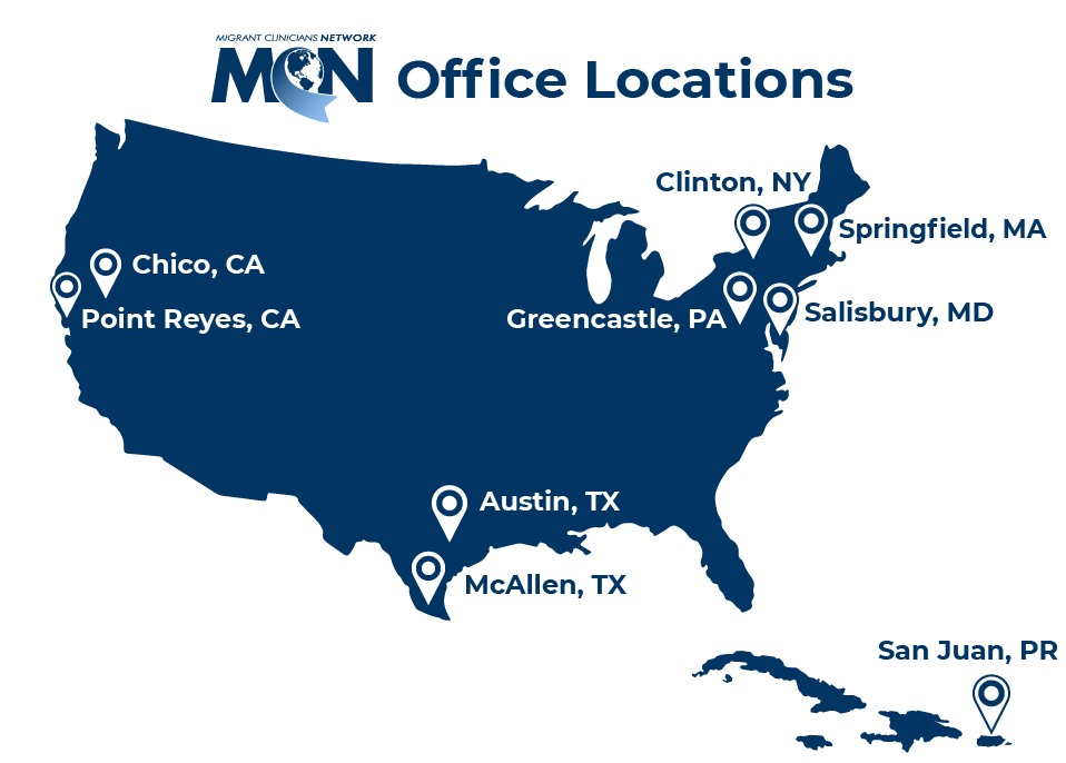 Migrant Clinicians Network’s professional staff of over 50 individuals are located across the nation. About three-quarters of our staff are bilingual in English and Spanish. We welcome your collaboration and feedback.