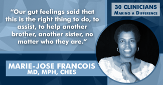 Help us honor the work of Dr. Francois by sharing her profile. And, make sure to check out the profiles of all 30 clinicians at the 30 Clinicians Making a Difference webpage.