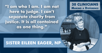 Help us honor the work of Sister Eileen by sharing her profile. And, make sure to check out the profiles of all 30 clinicians at the 30 Clinicians Making a Difference webpage.