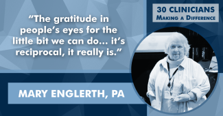 Help us honor the work of Mary Englerth by sharing her profile. And, make sure to check out the profiles of all 30 clinicians at the 30 Clinicians Making a Difference webpage.