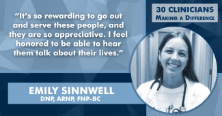 Help us honor the work of Emily Sinnwell by sharing her profile. And, make sure to check out the profiles of all 30 clinicians at the 30 Clinicians Making a Difference webpage.