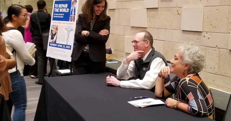 Dr. Paul Farmer, seated with MCN’s Deliana Garcia, at University of Texas in 2019.