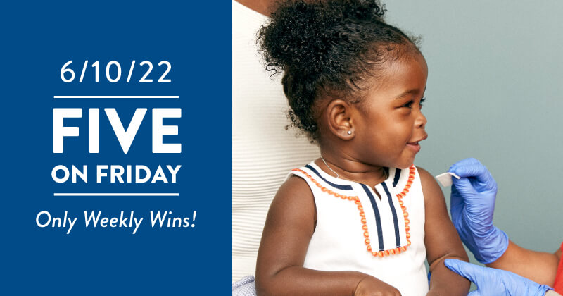 Weekly Win: Claire shared good COVID news on two fronts. Moderna is close to releasing its new booster with protection “so strong that it could potentially last a year,” says Moderna's CEO. Moderna Says Its New Vaccine Booster Shows 'Superior' Response to Omicron. Additionally, next week may be the week that so many families have been waiting for! White House Gets Ready for COVID Vaccine Approval for Youngest Children