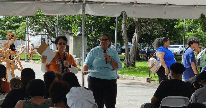 Attendees also had the opportunity to use their creativity to write environmentally focused Bombas, songs in the Afro-Puerto Rican musical tradition with roots in resistance. In an atmosphere of joy and awareness, the rhymes were sung.