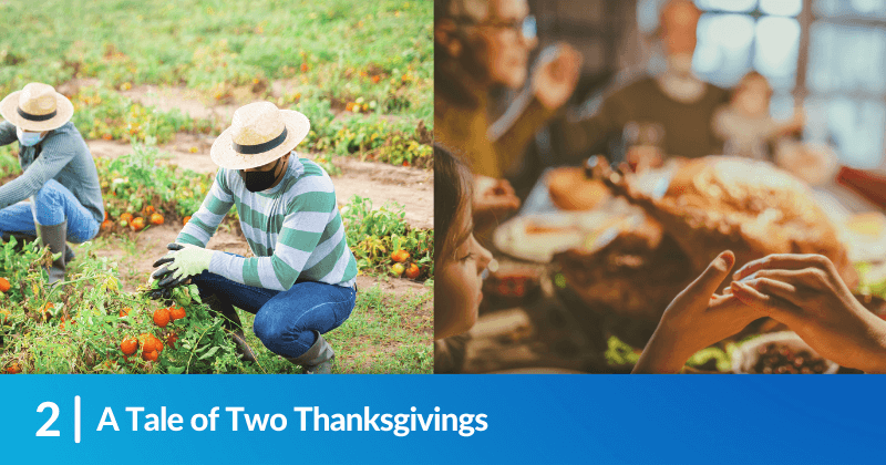 Grateful for our Farmworkers Coalition Group: Alma G. wanted to highlight this incredible group comprised of: Legal Aid Justice Center, Coalition of Immokalee Workers (CIW), Campesinos sin fronteras, Mujeres divinas, The Farmworker Association of Florida, Cultivemos, and Farmworker Justice. “Together, we will continue working for immigrants and migrants in the fields,” Alma said. Here’s CIW’s classic video, part of their campaign to bring various retailers into their Fair Food Program. A Tale of Two Thanksgivings