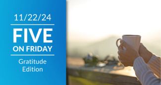 What are you grateful for? In MCN’s Witness to Witness resource, How to Help Yourself in a Crisis Now, one of the recommendations is: “Start your day by writing down three things you are grateful for.” Finding gratitude – even small ‘glimmers’ like a cup of hot coffee just when you need it – can reduce stress and anxiety, and stabilize your mood. The season of gratitude – Thanksgiving, which we celebrate here in the US next week – can (ironically) bring stressors of its own. This week on Five on Friday, we’re peeling back the many layers of Thanksgiving to focus just on what the name implies: giving thanks. Here are five gratitudes, offered by MCN staff!