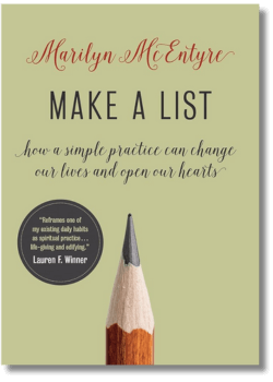 On my desk is a book a friend recommended to me by Marilyn McEntyre called Make a List: how a simple practice can change our lives and open our hearts. The book is a delight, and it does what the exercise above does: it makes visible what is already always present that can lift our spirits. In the Appendix are ideas for lists, for instance: “What’s worth waiting for” or “Why children enchant us” and “The benefits of bicycling.” You don’t have to make the lists she suggests – or bicycle, for that matter – for the contents of the lists to lift your spirits.