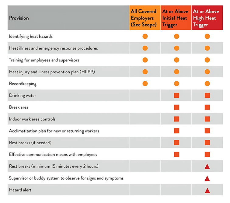 The chart below is a summary of the proposed requirements of the OSHA heat rule.