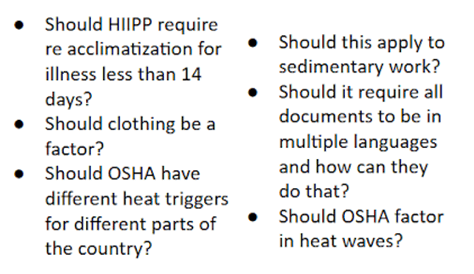 Policies such as these are why it is important that we pass federal policy to protect against heat illness. With the change in administration and the fact that this regulation is still in the initial comment stage we are predicting that it is unlikely to pass in the near future. However, there are still things we can do to implement the policy ourselves.