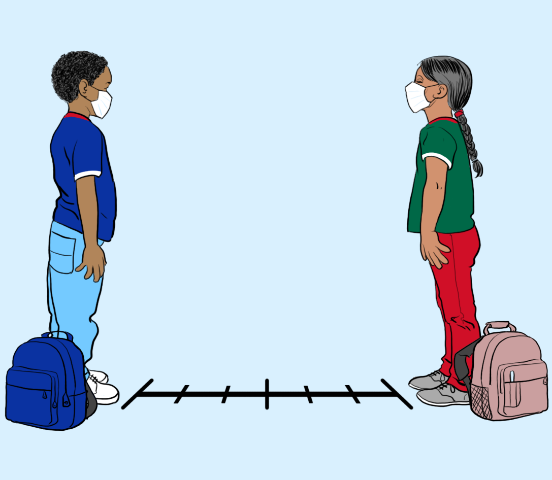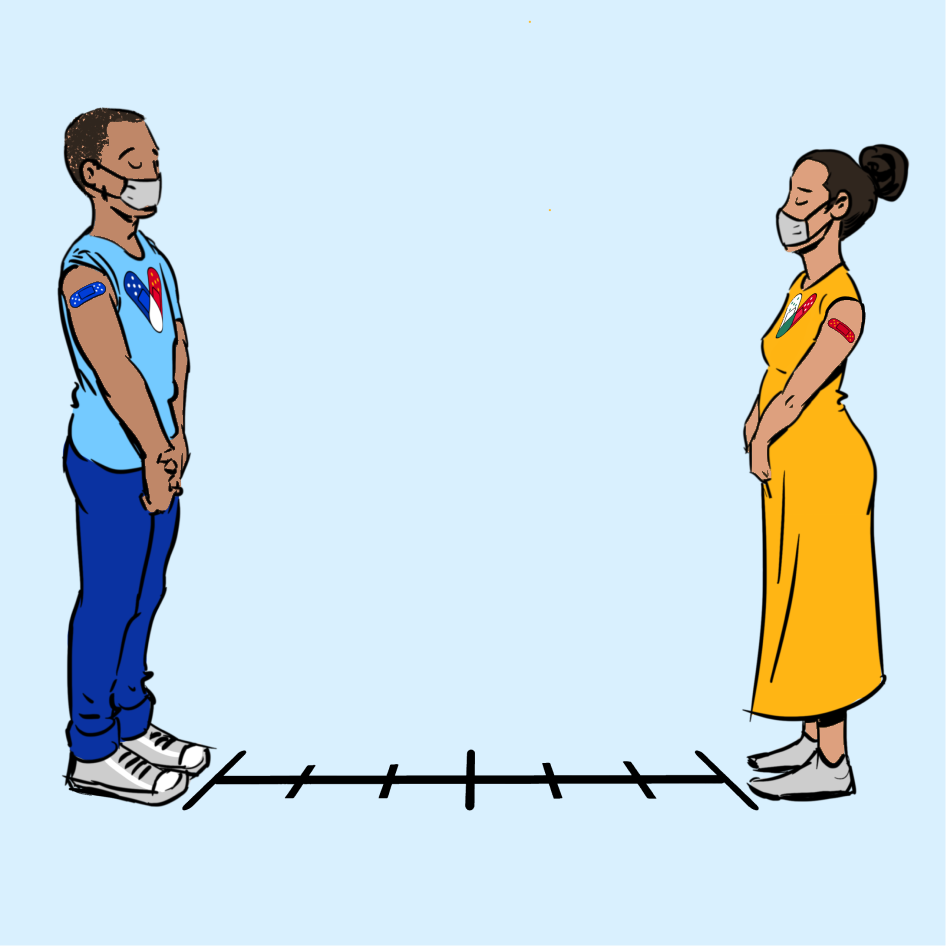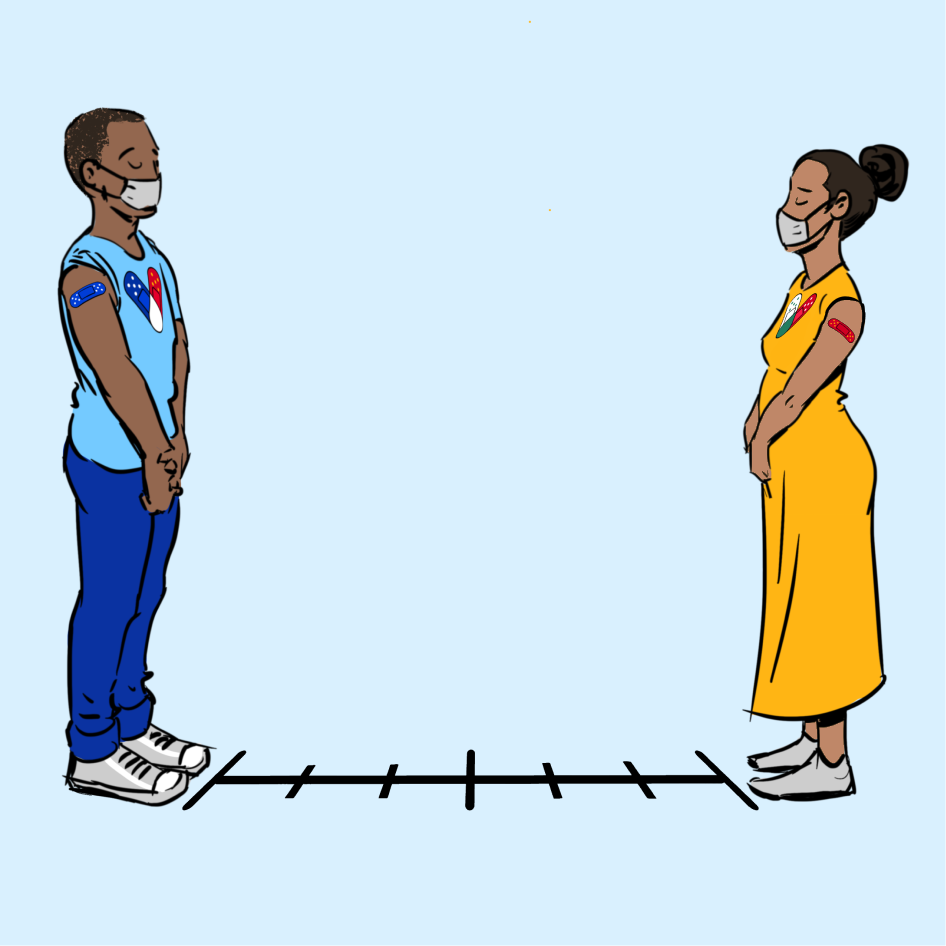 Vaccinated Man and Woman Social Distancing and Wearing Masks Option 1 | Option 2 | Option 3 | Option 4 | Option 5