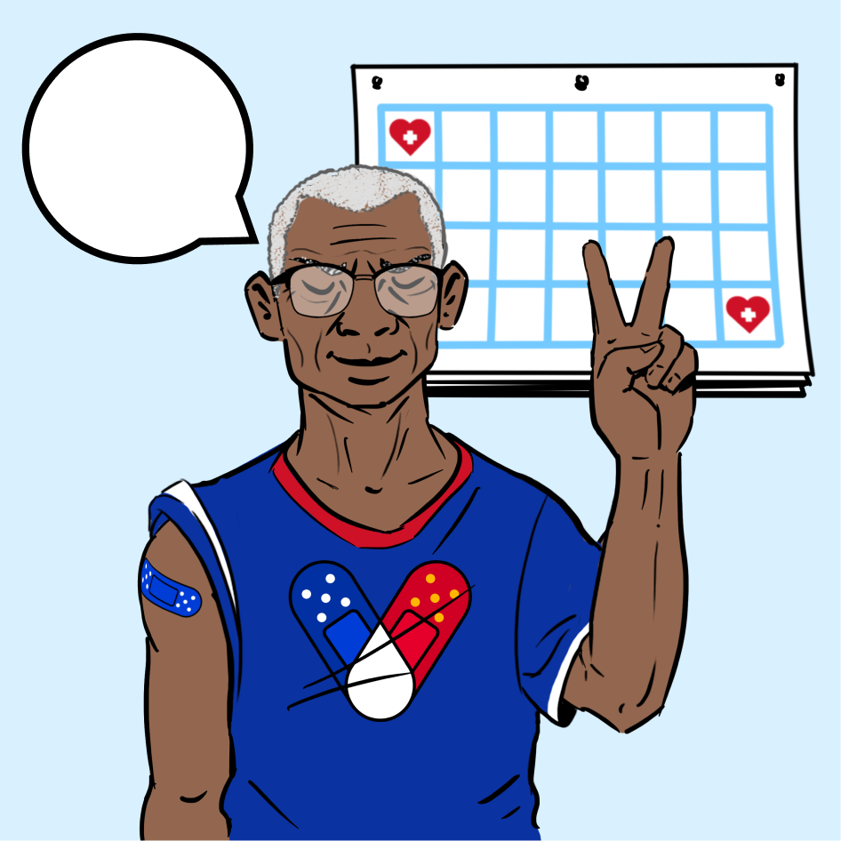 Vaccinated Man In a Green Shirt In Front of Calendar Option 1 | Option 2 | Option 3 | Option 4