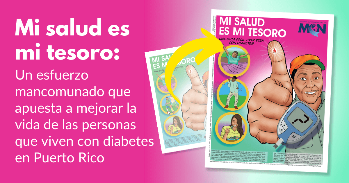 Dada la alta prevalencia de la diabetes en estas poblaciones vulnerables, el Dr. José Rodríguez, director médico del Hospital General Castañer en Puerto Rico y asesor médico principal en Puerto Rico de la Red de Proveedores de Servicios de Salud para Migrantes (MCN por sus siglas en inglés), vio la oportunidad de utilizar el cómic de MCN, Mi salud es mi tesoro: una guía para vivir bien con diabetes.