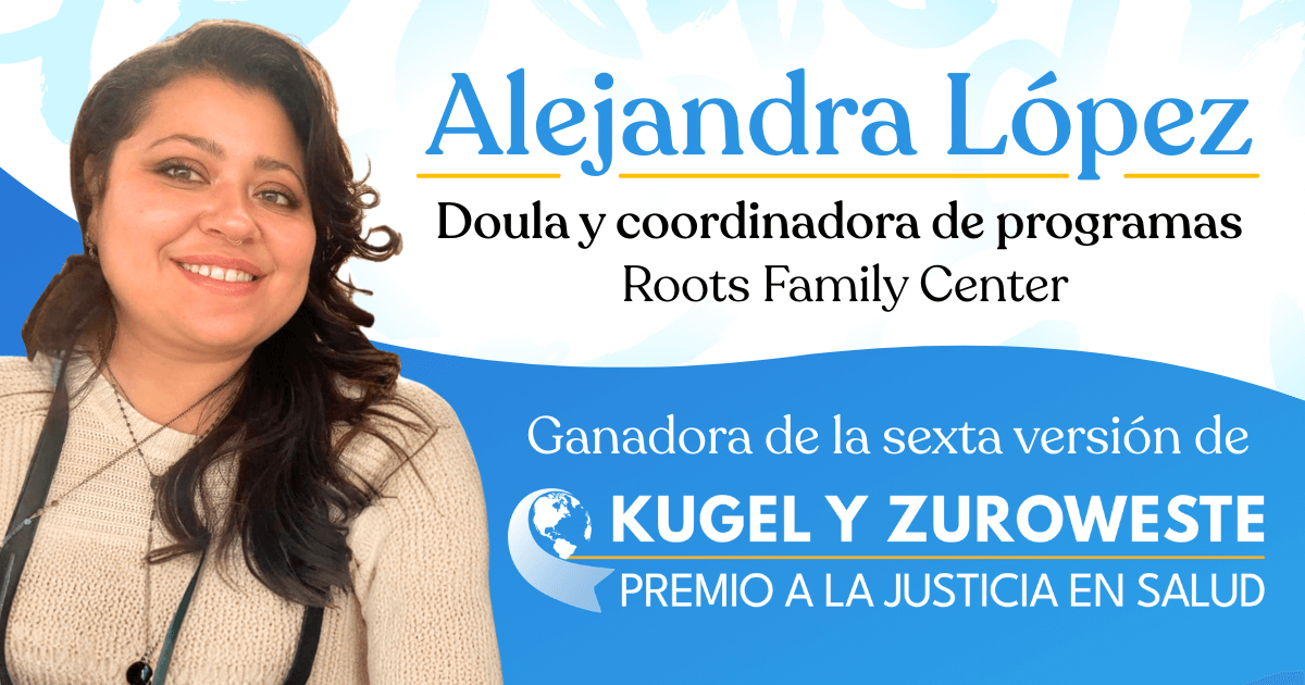 Alejandra López recibe el 6.º Premio Kugel y Zuroweste a la Justicia en Salud en reconocimiento a su liderazgo en la promoción de cuidados de salud materno-infantil culturalmente adecuados para las familias hispanohablantes e inmigrantes de Colorado. Como doula comunitaria y coordinadora de programas en Roots Family Center, Alejandra, desarrolló el primer currículo de capacitación de doulas en español de Colorado, integrando perspectivas indígenas y ancestrales en los cuidados perinatales. A través de su trabajo, ha sido mentora y ha entrenado a más de 32 doulas hispanohablantes, ha prestado apoyo en 20 partos y ha ayudado a proporcionar servicios de salud culturalmente adecuados a más de 80 familias. Su liderazgo ha abierto una nueva vía para que las doulas latinas puedan facturar a Medicaid, lo que refuerza tanto el acceso a la atención en salud como la sustentabilidad de la mano de obra. El trabajo de Alejandra es un ejemplo de justicia en salud en acción, ya que restaura la dignidad, la cultura y la equidad de los sistemas de salud materna.