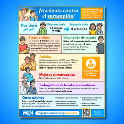 Recursos sobre vacunas: Comunidad Recursos de MCN Los grandes también se vacunan: Calendario Vacúnate contra el sarampión COVID-19 y nuestra comunidad: Rotafolio y Guía del facilitador Recursos de la Campaña de concientización sobre las vacunas contra COVID-19 Manual: Diseñando campañas de comunicación comunitarias "Yo me la puse" - Posters de vacunación contra COVID-19 Otros Recursos Recursos de The People's CDC sobre Reuniones en persona más seguras Ejemplo de boletín sobre vacunas contra la gripe, COVID-19 y VRS - Health and Human Services Mensajes de texto sobre gripe, COVID-19 y VSR para los miembros de la comunidad (Solo en inglés) - Health and Human Services
