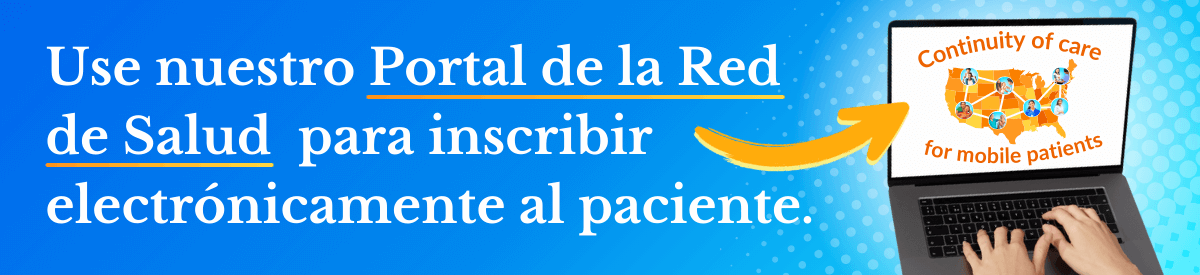 - Use nuestro Portal de la Red de Salud para inscribir electrónicamente al paciente o envíe un correo electrónico a hn@migrantclinician.org para crear una.