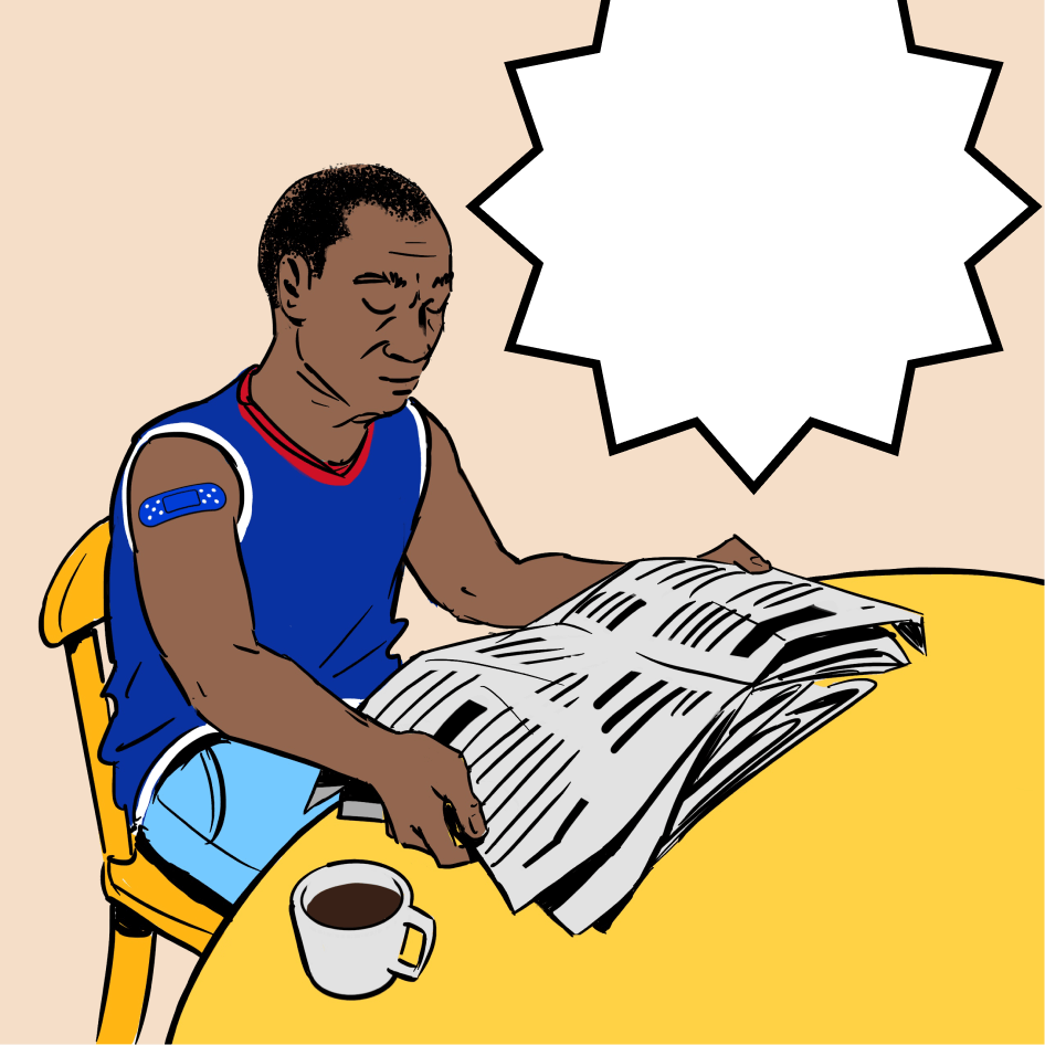 Hombre sentado en la mesa leyendo el periódico - Imágenes