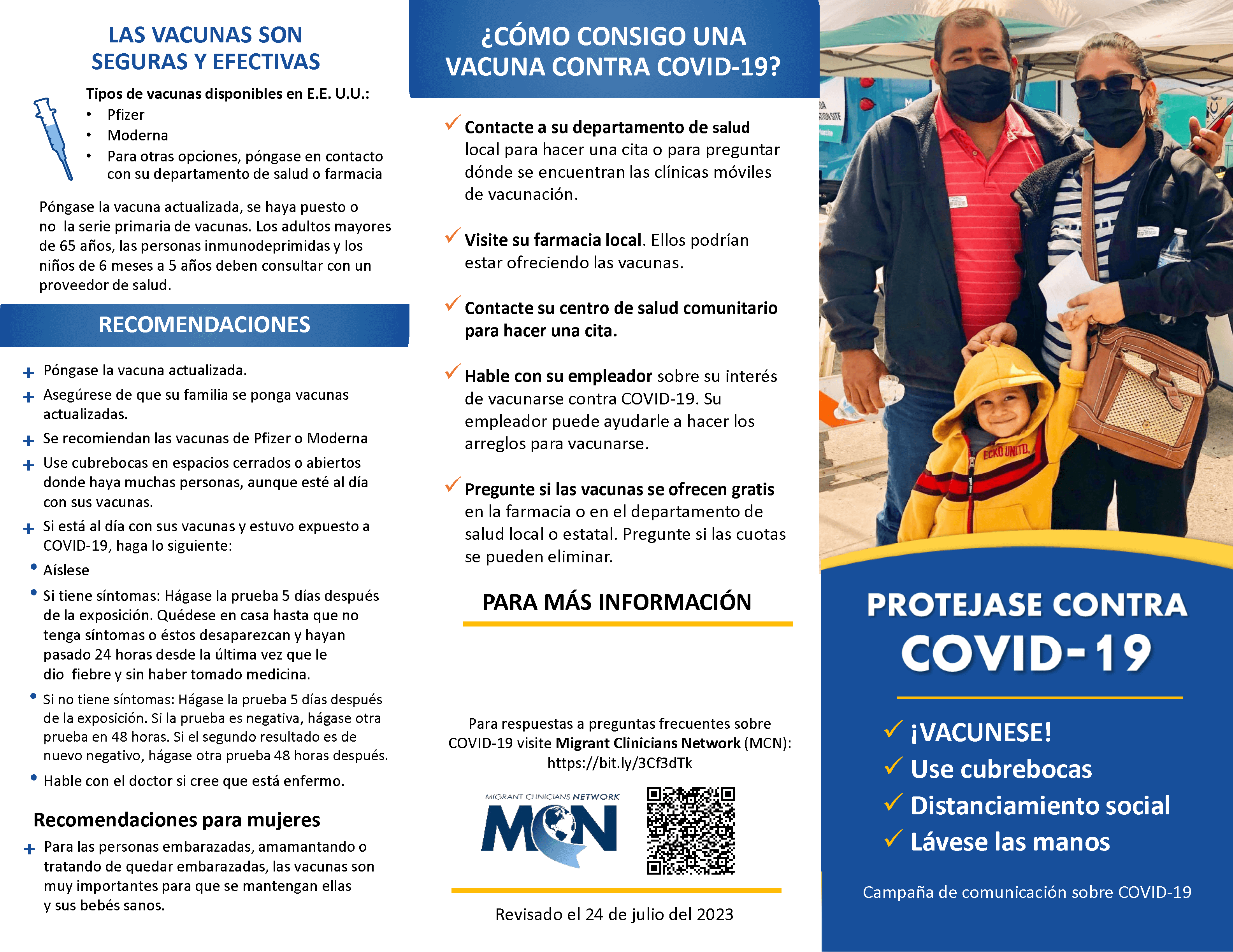 El rotafolio incluye conceptos básicos de COVID-19, la prevención y la vacunación en forma de mensajes claros y sencillos  que se  apoyan en ilustraciones culturalmente apropiadas para facilitar el proceso de comunicación y transmisión de información a los miembros de la comunidad. Usted puede descargar gratuitamente estos recursos tanto en inglés como en español.