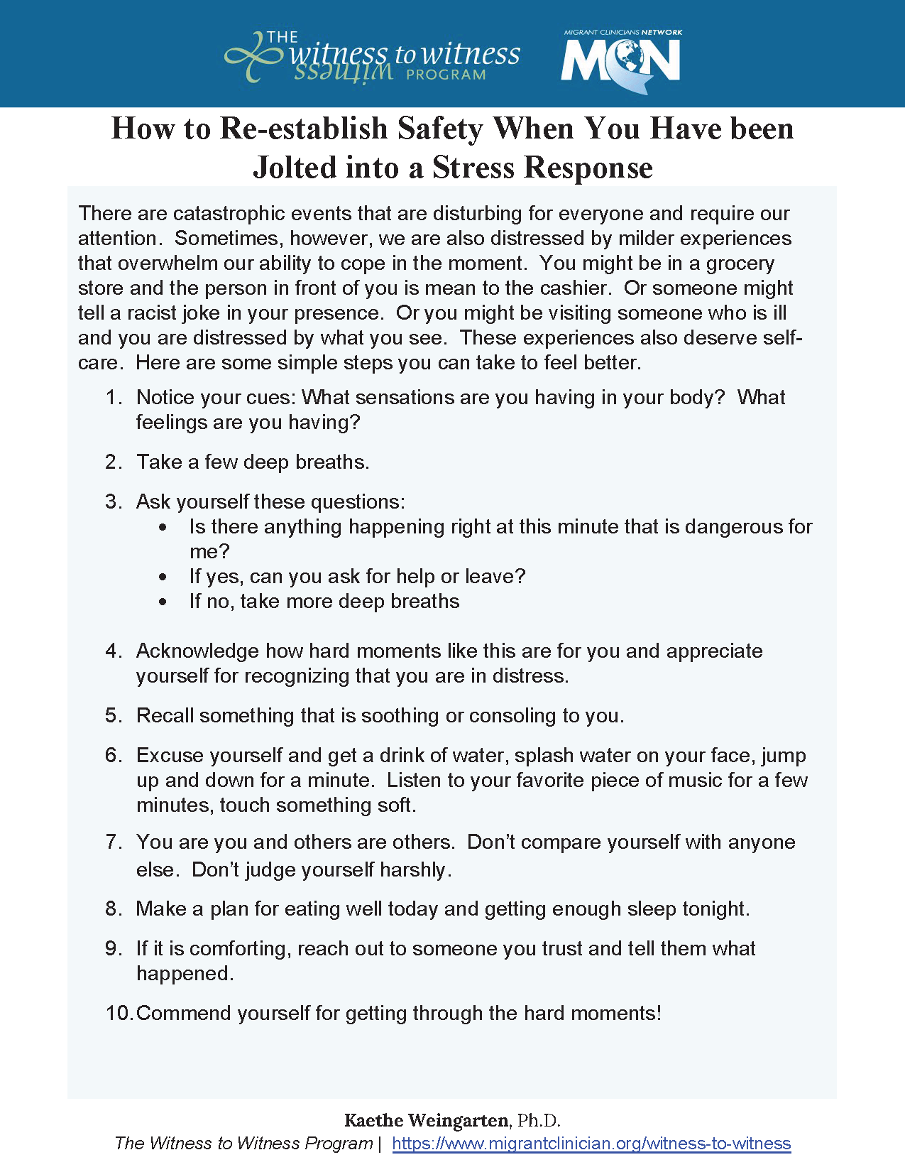 Download Resource How to Re-establish Safety When You Have been Jolted into a Stress Response (234.39 KB) How to Re-establish Safety When You Have been Jolted into a Stress Response Spanish (72.21 KB)