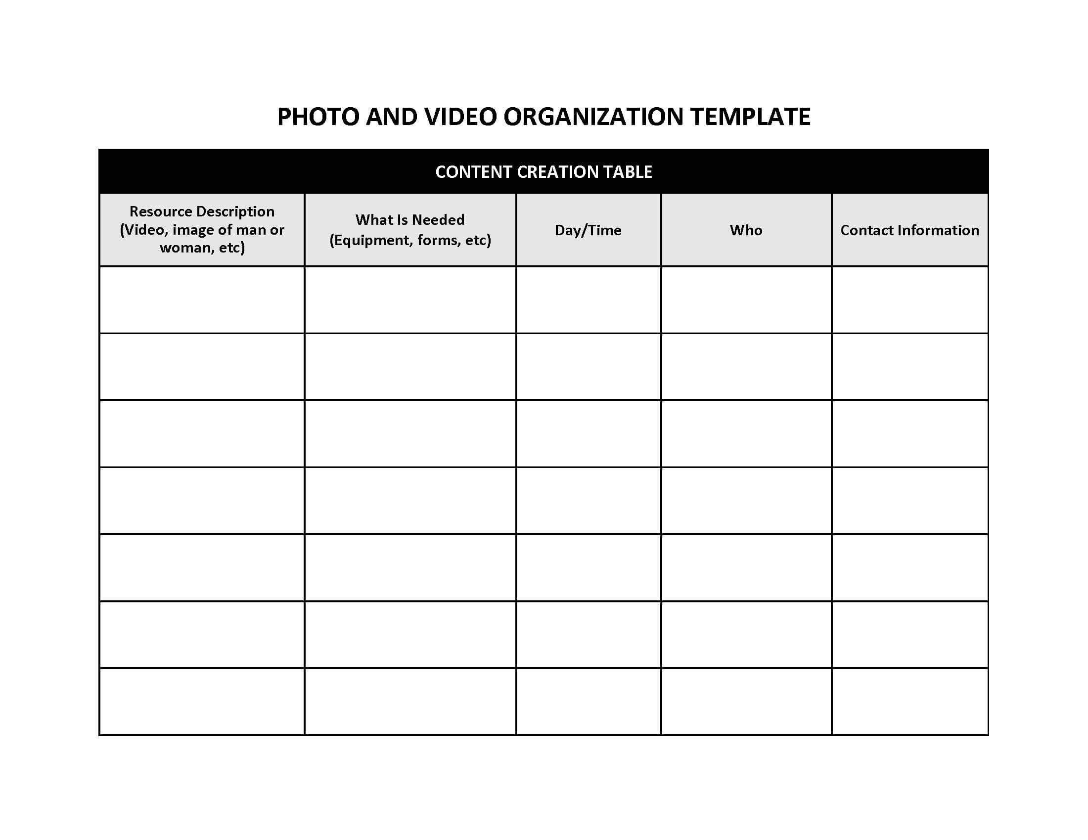 Download Resource Photo and Video Organization Template (36.72 KB) Spanish Photo and Video Organization Template (34.84 KB)