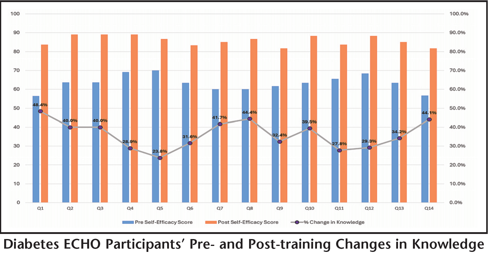 To gauge the effectiveness of the trainings, MCN asked participants to submit a pre- and post-training self-efficacy questionnaire. The questions revolved around the gain of knowledge, confidence, or ability for a variety of practices that are conducive to successful diabetes self-management. Participants were given access to the online questionnaire upon the conclusion of the six-part series. They were asked to think retrospectively about their abilities, knowledge, or skills, both prior to participating in the series and after they had participated in the series.