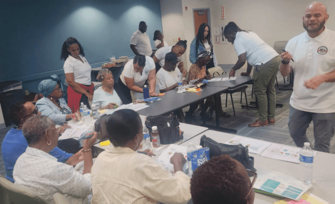 Division of Social and Community Partners (DSCP) staff members at The Capacity Building Town Hall at Juan Luis Hospital conducting a risk analysis of climate change events. Courtesy of Frederiksted Health Care Inc.