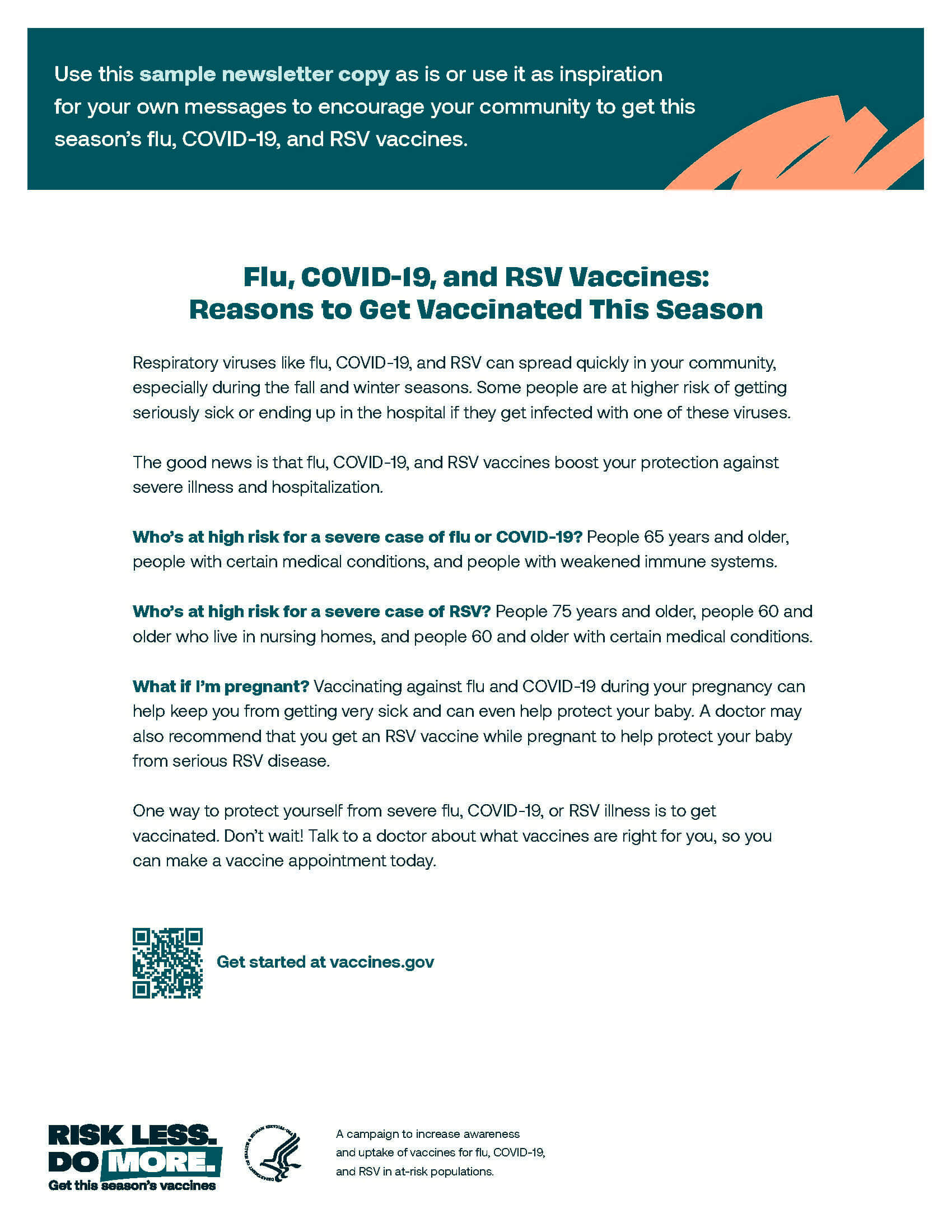 Flu, COVID-19, and RSV Vaccines E-Newsletter Blurb - Health and Human Services