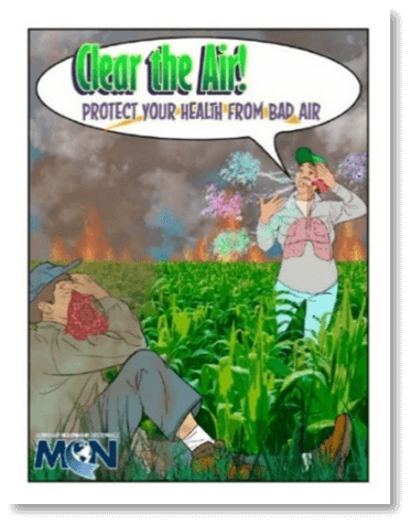 This comic serves as a support for health promoters by conveying basic information about respiratory health and air pollution. It includes basics about the respiratory system, particulate matter, the Air Quality Index, sources of air pollution, and the personal protective equipment that outdoor workers should wear to protect themselves from respiratory illnesses.