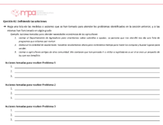 An exercise that allows you to make a list of the measures or actions that have been taken to address the problems identified, evaluate if they have worked, identify the people who have been involved, list possible solutions and specific actions to reach the solutions.
