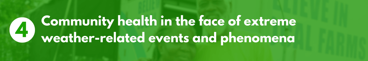 This module addresses health risks in communities caused by weather-related extreme events or phenomena by considering physical, chemical, and biological risks. It contains information, resources, and tools to understand and identify common health hazards in farming communities, which become especially important risks during extreme weather events. Learn how extreme weather events, often intensified by extreme weather-related phenomena, affect community health and in being able to identify chemical and biological risks. In this module, mental health, chronic diseases, infectious diseases will be discussed in the context of extreme weather events. Tools and resources will be presented to educate about extreme weather events, emergency management, risk mitigation strategies, and protecting community health and safety.