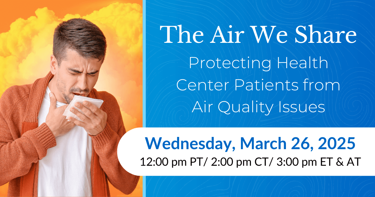 This webinar will discuss the impact of air quality on health. We will also discuss tools for monitoring and assessing air quality, and how health centers play a vital role in mitigating risks and protecting patient health.