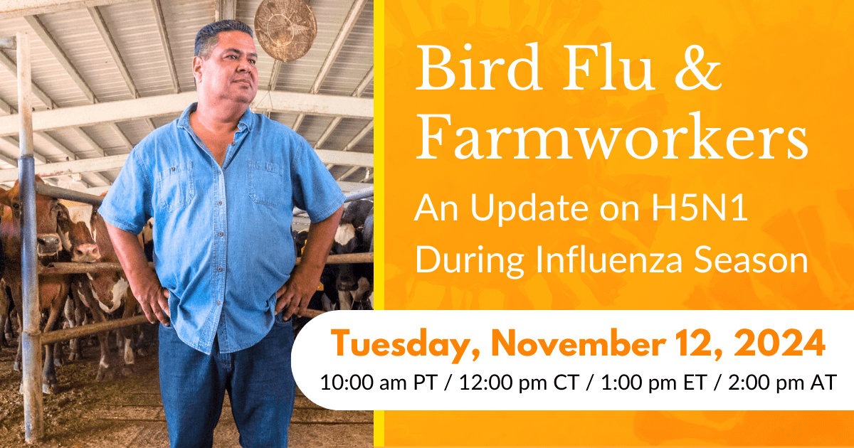 H5N1 – also known as highly pathogenic avian influenza/HPAI or bird flu – continues to spread among dairy herds and poultry flocks. While the risk to the general public remains low, workers on dairy and poultry farms are at high risk. In this webinar, Migrant Clinicians Network, in collaboration with the National Center for Farmworker Health, offers the latest updates on the current state of H5N1. We will overview the recommendations regarding treatment and prevention of H5N1 for clinicians and community health workers serving farmworkers employed in dairy and poultry. We will also discuss considerations for H5N1 as seasonal influenza begins taking hold, and the importance of reducing coinfection. Key social determinants of health, such as occupation, language, and literacy, will be discussed as we introduce strategies to provide culturally contextual care to workers. We will share resources in English and Spanish to address H5N1 and the seasonal flu.