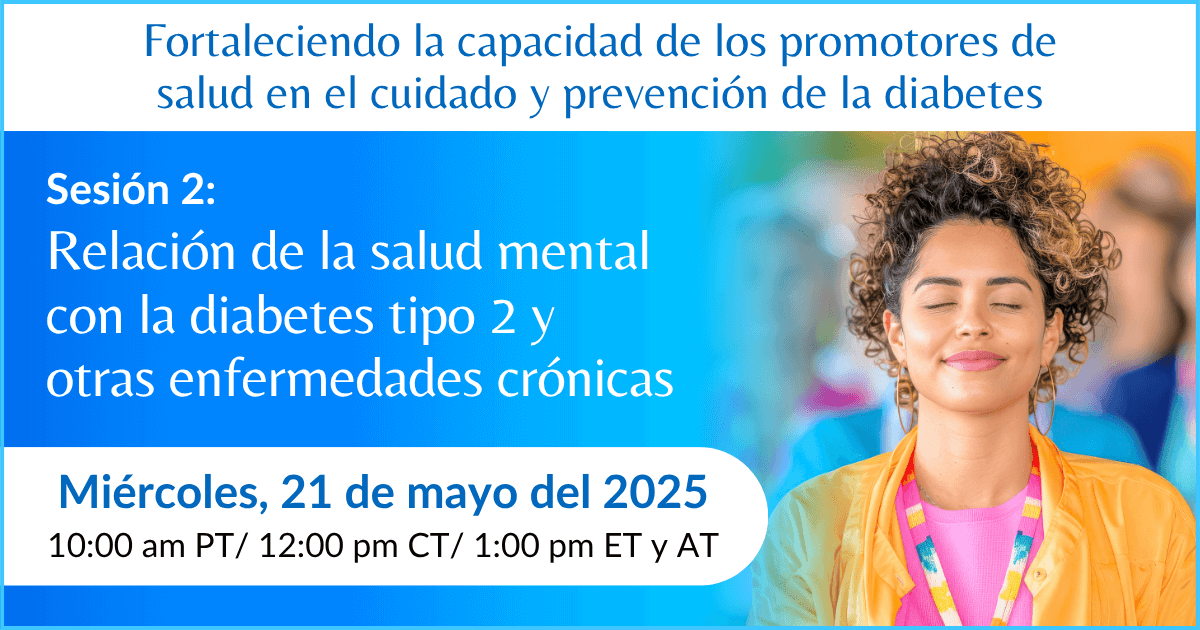 En esta sesión se describirá la relación que existe entre la salud mental y la salud física y cómo los promotores de salud pueden ayudar a los pacientes a reconocer los signos que potencialmente puedan interferir con el éxito de las prácticas de automanejo de la diabetes tipo 2.